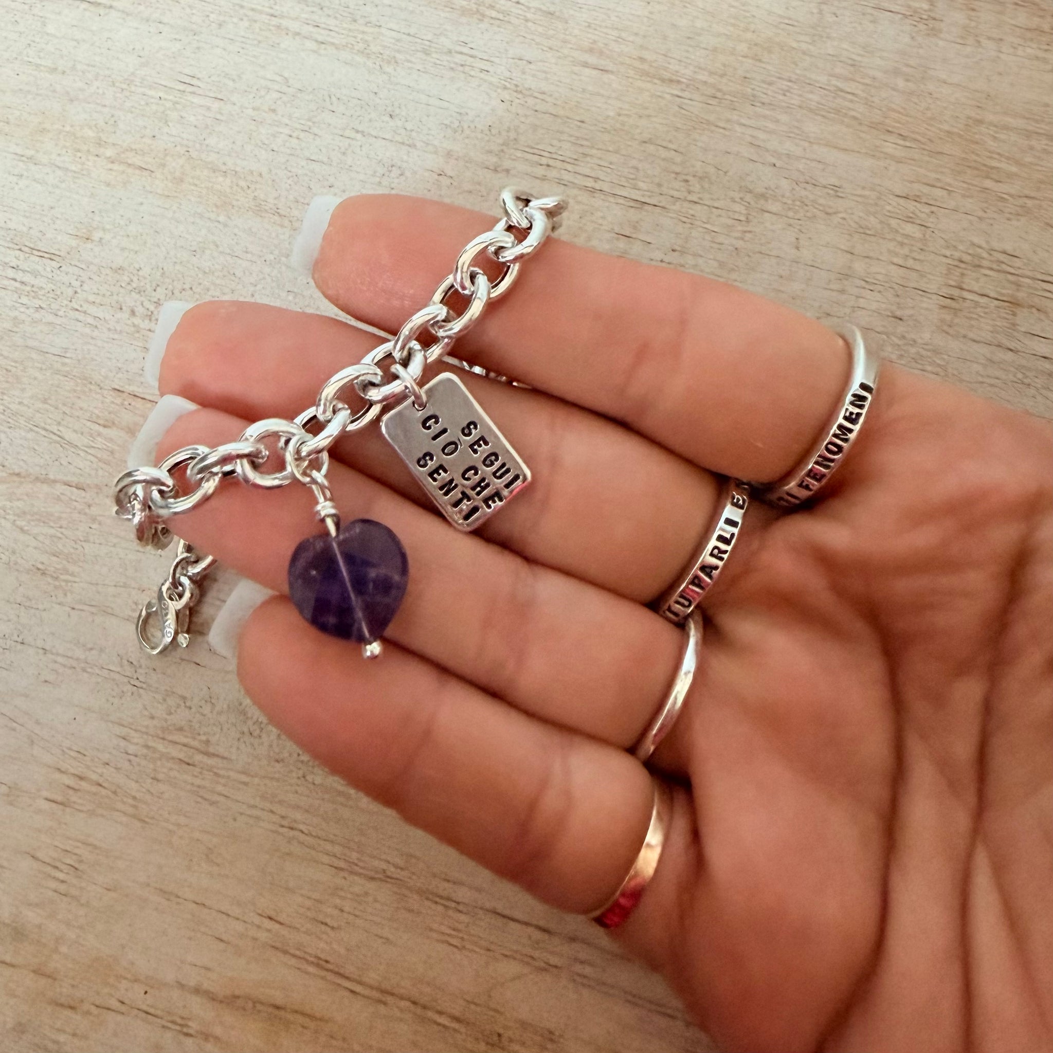 G.G2607 Bracciale Argento 925 e ametista “Segui ciò che senti” (personalizzabile)