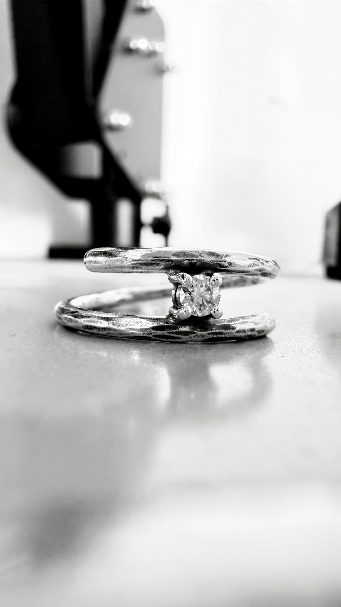 Finitura martellata e brunita.